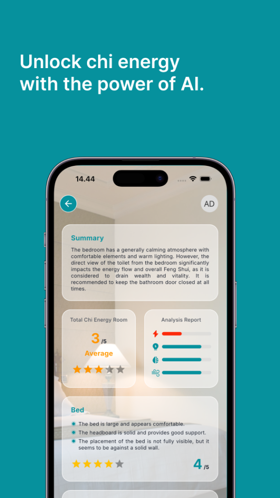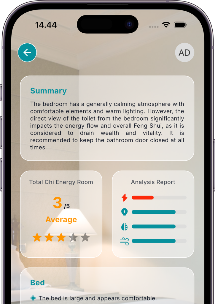Fengshui AI is a smart and modern tool designed to help you understand and improve the chi energy within your home, workspace, or any environment. By simply uploading a photo, our advanced AI analyzes key Feng Shui elements—balance, harmony, flow, lighting, placement, and energy patterns—to provide insights and recommendations you can apply instantly.